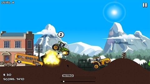 首先选择并定制您的汽车。你的目标是在你试图击败对手的时候,在崎岖不平的道路上跳跃几次。