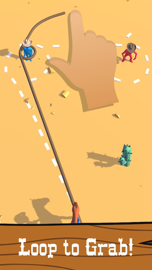 游戏玩法非常简单,按住并划动屏幕就能掷出套绳,把所有人都套起来之后松开就能收回来。